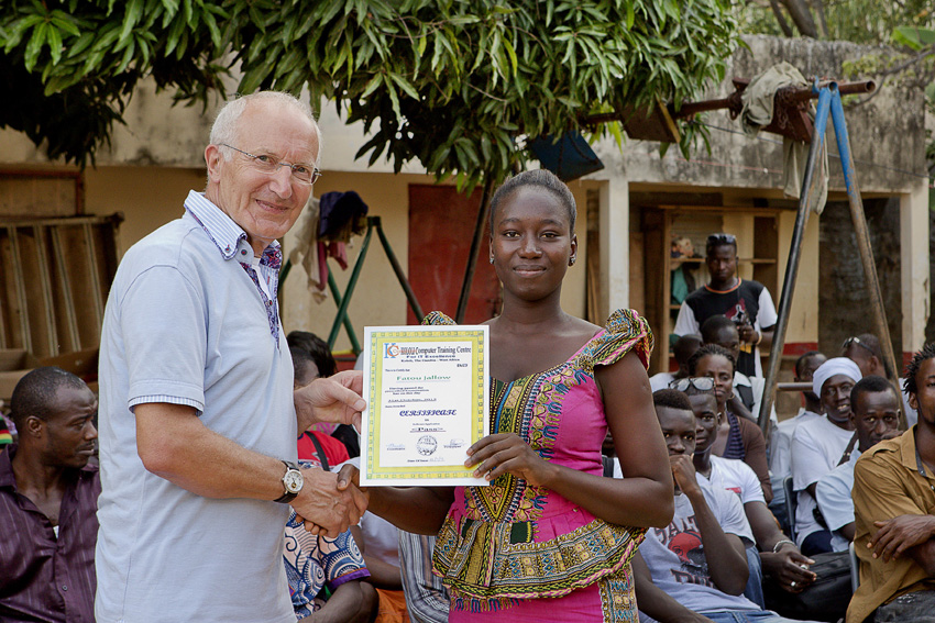 Woensdagmiddag 11 november was een feestmiddag voor veel leerlingen i.v.m. de certificaatuitreiking. Er werd een openingstoespraak gehouden door Cheyassin, de computerleraar die samen met hoofdonderwijzeres Marie deze middag georganiseerd had. Verder werd er gesproken door de manager Kambi, Marie, de secretaris van de Stichting, Jan Wijers en een vertegenwoordiger van het school-compound. Er werden 15 schoolcertificaten en 15 computercertificaten uitgereikt aan de geslaagde leerlingen door Con en Jan. Helaas hadden 11 leerlingen onvoldoende resultaat geboekt en doen klas 3 nog een keer over. De eisen om te slagen zijn streng.